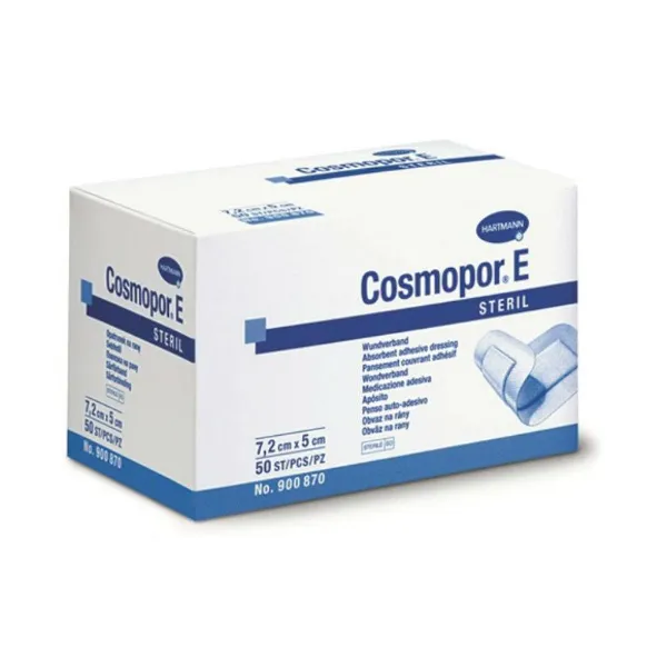 Waar het product voor toegepast kan worden: \nHartmann Cosmopor E wordt voornamelijk gebruikt voor het bedekken en beschermen van postoperatieve wonden, snijwonden, schaafwonden en andere oppervlakkige wonden die geen infectie vertonen. Het verband absorbeert exsudaat (wondvocht) en voorkomt dat de wond in contact komt met vuil en bacteriën, wat bijdraagt aan een schone genezing. Cosmopor E wordt veel gebruikt door zorgprofessionals in ziekenhuizen en klinieken, maar is ook geschikt voor gebruik thuis in de thuissituatie bij herstel na een operatie of een ongeluk. \n Wat de (kern)eigenschappen en voordelen zijn: \n \n Absorberend vermogen: Het verband heeft een hoog absorptievermogen, wat betekent dat het exsudaat uit de wond snel opneemt en vasthoudt, waardoor de wond schoon en droog blijft. \n Zacht en comfortabel: Het verband is zacht en flexibel, wat zorgt voor een comfortabele pasvorm en minimale verstoring van de genezing. \n Luchtdoorlatend: Cosmopor E is ademend, waardoor de huid goed kan ventileren en het risico op maceratie (huidverweking door vocht) wordt verminderd. \n Niet-klevend: Het contactmateriaal aan de wondzijde van het verband kleeft niet aan de wond, waardoor het verwisselen van het verband minder pijnlijk is. \n Veilig en hygiënisch: Cosmopor E wordt geleverd in steriele verpakkingen, wat de hygiëne bevordert en het risico op infectie vermindert. \n \nDeze eigenschappen maken Hartmann Cosmopor E een uitstekende keuze voor het verplegen van wonden die een betrouwbare en ademende bescherming nodig hebben voor een snelle genezing. \n Wie het product kan gebruiken: \nHartmann Cosmopor E is geschikt voor zorgprofessionals zoals verpleegkundigen, chirurgen en artsen die het gebruiken voor wondverzorging in ziekenhuizen, klinieken en verzorgingstehuizen. Het is ook ideaal voor particulieren die wondzorg thuis uitvoeren, bijvoorbeeld na een operatie of bij het verzorgen van kleine snijwonden of schaafwonden. \n Materiaal en afmetingen van het product: \nCosmopor E bestaat uit een absorberende laag die exsudaat opneemt, een ademend non-woven materiaal aan de buitenzijde en een niet-klevende wondzijde die de genezing niet verstoort. De verschillende beschikbare afmetingen zijn: \n \n 7,2 x 5 cm (01021-00) – Geschikt voor kleine wondoppervlakken of postoperatieve wonden, bijvoorbeeld op vingers of kleinere lichaamsdelen. \n 10 x 6 cm (01022-00) – Geschikt voor kleine tot middelgrote wonden, zoals bij snij- of schaafwonden op handen of voeten. \n 10 x 8 cm (01023-00) – Ideaal voor iets grotere wonden, zoals bij operatiewonden op armen of benen. \n 15 x 8 cm (01024-00) – Geschikt voor grotere wonden of postoperatieve wondbedekking, bijvoorbeeld bij wonden op de romp. \n 20 x 8 cm (01025-00) – Voor middelgrote tot grotere wondoppervlakken, zoals bij operaties of grotere schaafwonden. \n 20 x 10 cm (01026-00) – Voor grotere postoperatieve wonden of voor gebruik op grotere lichaamsdelen. \n 25 x 10 cm (01027-00) – Geschikt voor grote wondoppervlakken of voor gebruik bij verwondingen aan grotere lichaamsdelen. \n 35 x 10 cm (01028-00) – Voor het bedekken van zeer grote wonden of postoperatieve wondbedekking op grotere lichaamsdelen. \n \n Hoe het product verpakt is: \nHartmann Cosmopor E wordt geleverd in steriele, hygiënische verpakkingen die het product beschermen tegen vervuiling en het risico op infectie verminderen. Het verband is compact verpakt en gemakkelijk uit de verpakking te halen zonder het te beschadigen. Elke maat is individueel verpakt om gebruiksgemak en een lange houdbaarheid te garanderen.