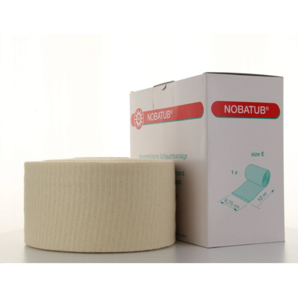 \n\nHet Nobatub elastisch buisverband maat E is een veelzijdig medisch hulpmiddel dat ontworpen is om effectieve ondersteuning en bescherming te bieden aan diverse lichaamsdelen. Dit elastische verband is vervaardigd uit hoogwaardig, huidvriendelijk materiaal en biedt een comfortabele pasvorm. Het buisverband is speciaal ontwikkeld voor gebruik in medische settings en is geschikt voor zowel professioneel als thuisgebruik.\n\nBelangrijkste kenmerken\n\nMateriaal en ontwerp\n- Gemaakt van hoogwaardig elastisch textiel dat zacht aanvoelt op de huid.\n- Het ontwerp zorgt voor een gelijkmatige drukverdeling, wat bijdraagt aan het comfort van de drager.\n- Huidvriendelijk en ademend, waardoor het risico op huidirritaties wordt verminderd.\n\nFunctionaliteit\n- Uitstekende elasticiteit die zorgt voor een goede compressie en ondersteuning.\n- Gemakkelijk op maat te knippen, wat het geschikt maakt voor verschillende lichaamsdelen.\n- Geschikt voor het fixeren van verbanden en het bieden van ondersteuning bij blessures en zwellingen.\n\nToepassingen\n\nMedisch gebruik\n- Veelgebruikt in ziekenhuizen en klinieken voor compressietherapie.\n- Helpt bij het stabiliseren van gewrichten en het verminderen van zwellingen na operaties of blessures.\n- Ondersteunt bij het herstel van spier- en peesblessures.\n\nThuiszorg\n- Ideaal voor patiënten die na een medische ingreep thuis verder herstellen.\n- Handig voor het bieden van extra steun bij dagelijkse activiteiten zonder de mobiliteit te beperken.\n\nSportverzorging\n- Veelvuldig gebruikt in de sportgeneeskunde voor het ondersteunen van spieren tijdens fysieke activiteiten.\n- Kan helpen bij het voorkomen van blessures door adequate ondersteuning te bieden tijdens het sporten.\n\nOnderhoud en gebruik\n\n- Het buisverband is herbruikbaar en kan eenvoudig worden gewassen op lage temperaturen.\n- Aanbevolen om het verband regelmatig te controleren op slijtage en indien nodig te vervangen voor optimale prestaties.\n- Zorg ervoor dat het verband goed droog is voor hergebruik om de elasticiteit en werking te behouden.\n\nHet Nobatub elastisch buisverband maat E is een betrouwbaar en veelzijdig hulpmiddel dat bijdraagt aan het effectief behandelen en ondersteunen van diverse medische en dagelijkse toepassingen.